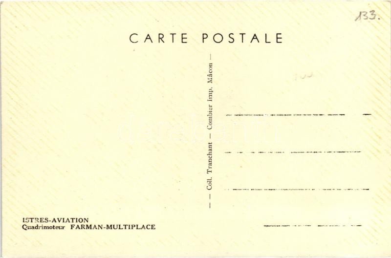 Istres Aviations. Quadrimoteur Farman-Multiplace / French aeroplane https://www.darabanth.com/de/313-Fernauktion/313.0/Ansichtskarten/Flugwesen~500083/Istres-Aviations-Quadrimoteur-Farman-Multiplace-French-aeroplane~II1026060