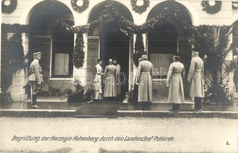Begrüssung der Herzogin Hohenberg durch den landeschef Potiorek. Verlag Philipp Rubel / Oskar Potiorek greets Sophie, Duchess of Hohenberg