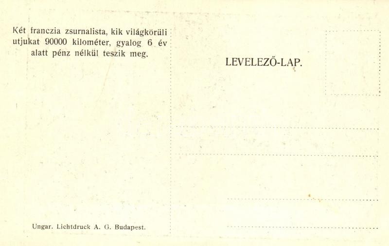 Joseph Gricourt, Paul Sévin; journalistes Francais, Faisant le tour du mond a pied / két francia zsurnaliszta világutazó / French world traveler journalists