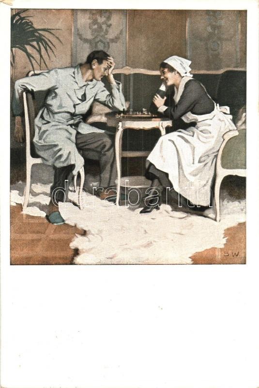 Beschreibung: Kriegspostkarten von B. Wennerberg Nr. 22. Schach / Chess art postcard s: S. W.