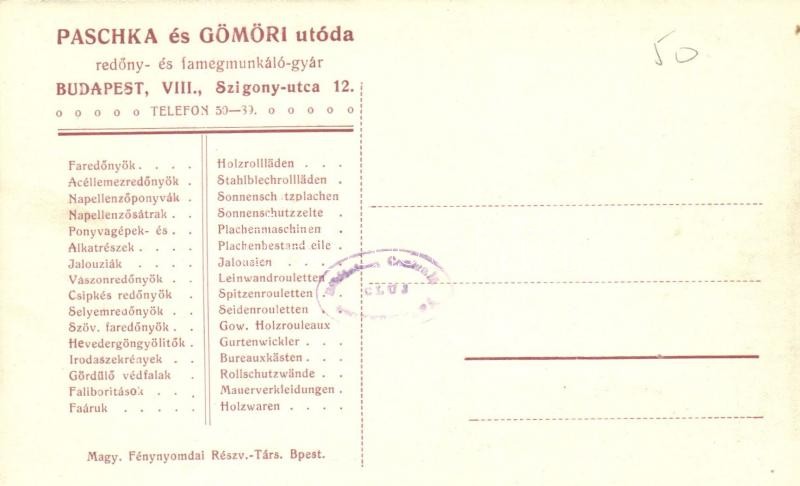 Budapest VIII. Szigony utca 12. Paschka és Gömöri utóda redőny és fame... https://www.darabanth.com/de/313-Fernauktion/313.0/Ansichtskarten/Ungarn~500006/Budapest-VIII-Szigony-utca-12-Paschka-es-Gomori-utoda-redony-es-famegmunkalo-gyara-gepm~II1716086