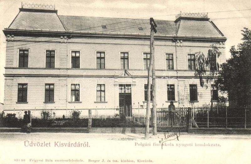 Beschreibung: Kisvárda, Polgári fiú iskola nyugati homlokzata. Frigyesi Béla amateur felvétele