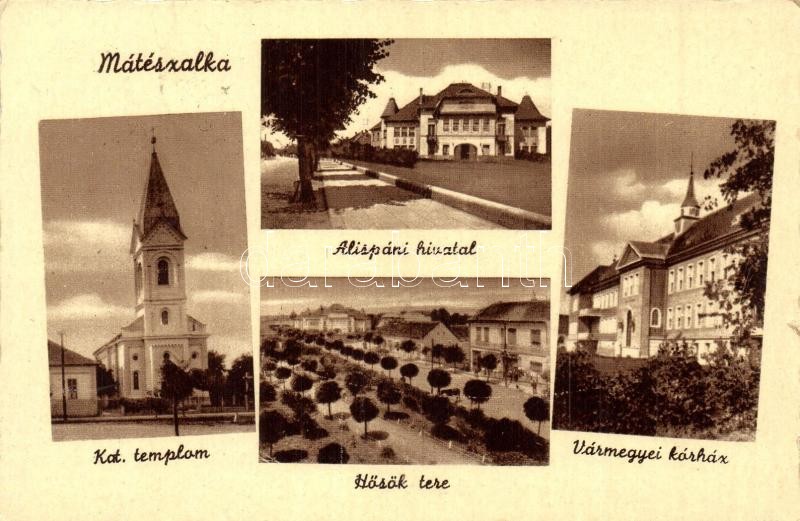 Beschreibung: Mátészalka, Alispáni hivatal, Vármegyei kórház, Hősök tere, katolikus templom