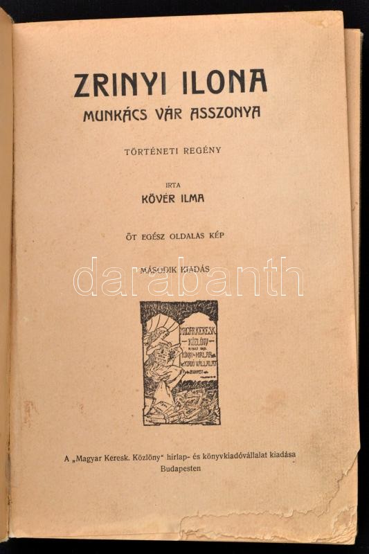 Kövér Ilma: Zrinyi Ilona. Munkács vár asszonya. Bp.,é.n., Magyar Keresk. Közlöny Hírlap- és Könyvkiadóvállalat. Átkötött modern egészvászon-kötés, az eredeti borítót az átkötéskor felhasználták, kissé hiányos szélű címoldallal.