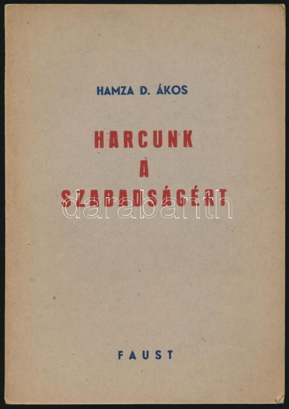 Hamza D. Ákos: Harcunk a szabadságért. A "Nemzeti Ellenállás" egyik csoportjának részvétele a felszabadulási küzdelemben. Bp.,1947, Faust. Kiadói papírkötés.