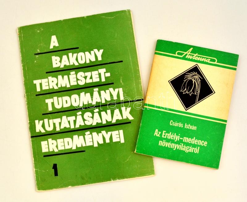 2 db könyv: Csűrös István: Az Erdélyi-medence növényvilágáról. Kolozsvár, 1974, Dacia. + Fekete Gábor: A Bakony növénytakarója. Veszprém, 1964, Bakonyi Múzeum. PapÃrkötésben, jó állapotban.