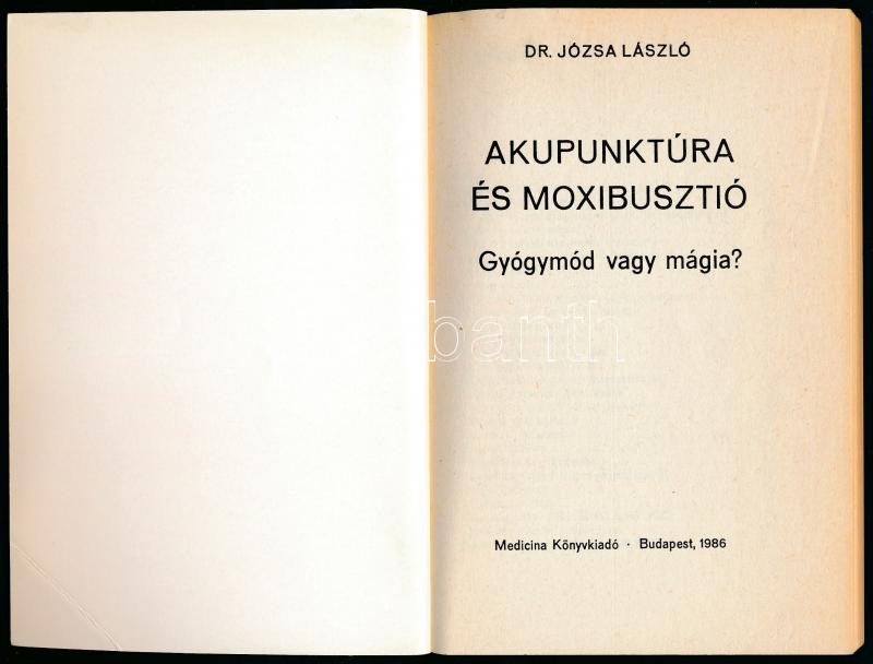 Dr. Józsa László: Akupunktúra és a moxibusztió. Gyógymód és mágia? Bp., 1986, Medicina. Kiadói papírkötés.