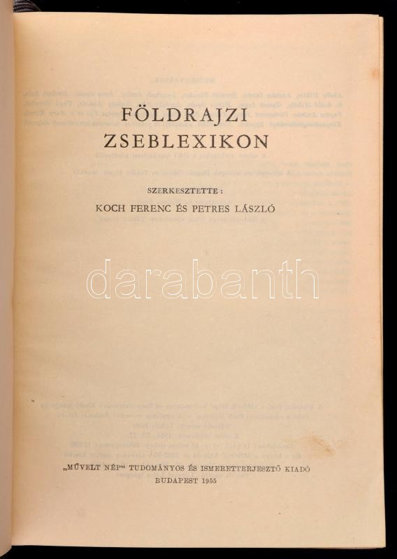 Földrajzi zseblexikon. Szerk.: Koch Ferenc, Petres László. Bp., 1955, "Művelt Nép" Tudományos és Ismeretterjesztő Kiadó. Kiadói egészvászon-kötés.