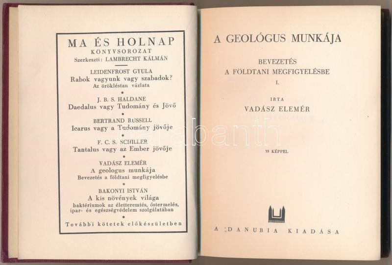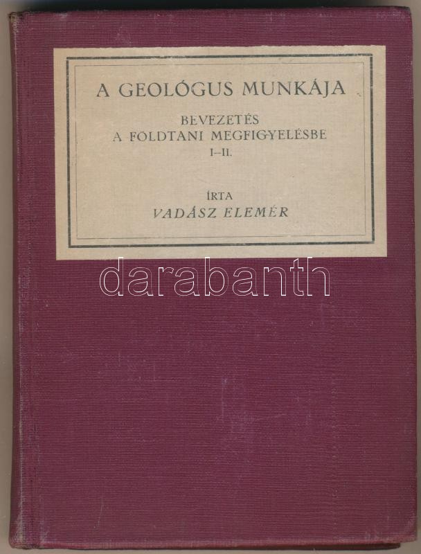 Vadász Elemér: A geológus munkája. Bevezetés a földtani megfigyelésbe. I-II. kötet. (Egybekötve.) Ma és holnap. (Pécs, 1928), Danubia,(Dunántúli Nyomda-ny.), 222+2 p. Átkötött félvászon-kötés, jó állapotban.