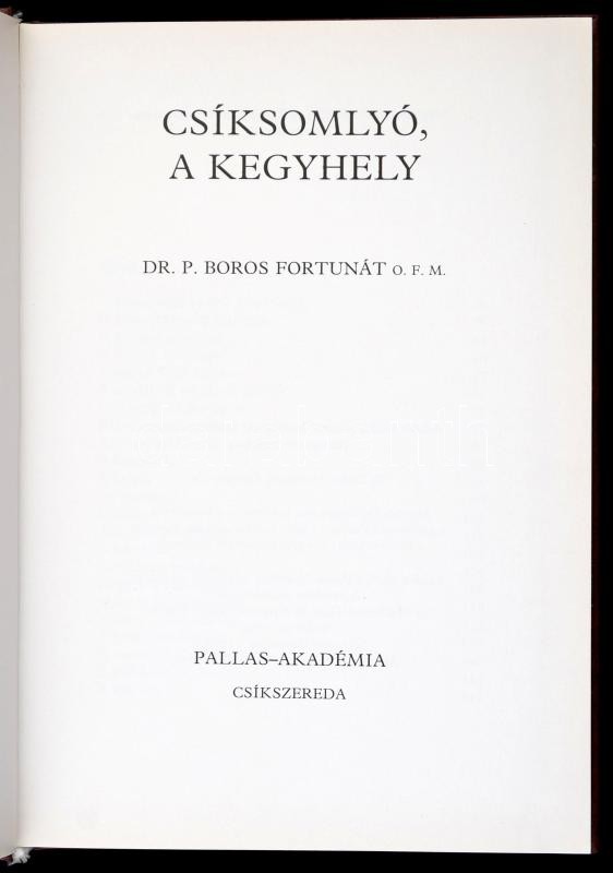 Boros Fortunát: Csíksomlyó, a kegyhely. Csíkszereda, 1994, Pallas Akadémia. Műbőr kötésben, jó állapotban.