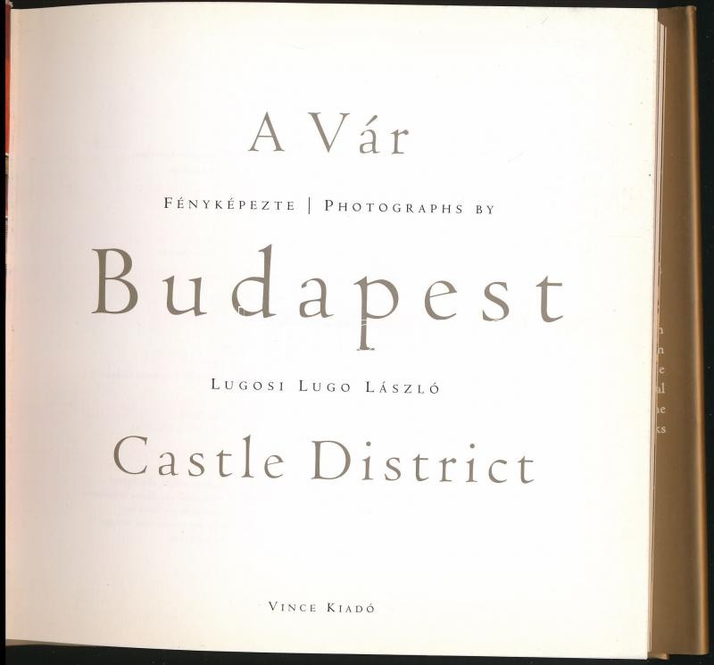 Lugosi Lugo László: A vár - Castle District - Budapest. Esterházy Péter előszavával. Szerk.: Csáki Judit. Fordította: Rácz Katalin. Bp., 2004, Vince. Kiadói kartonált papírkötés, kiadói papír védőborítóban. Gazdag képanyaggal illusztrálva./ Paperbinding, in paper cover, in Hungarian and language.