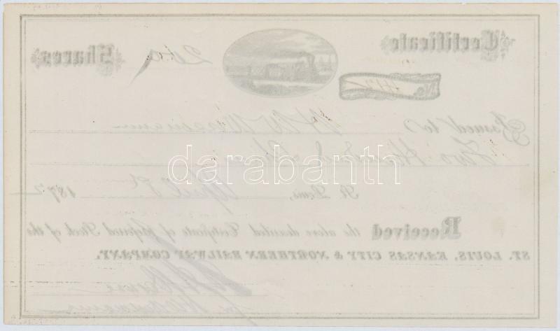 Amerikai Egyesült Államok / Saint Louis 1872. "St. Louis, Kansas City és Északi Vasúttársaság" részvényutalványa 200 részvényről T:I- szélén kis szakadás