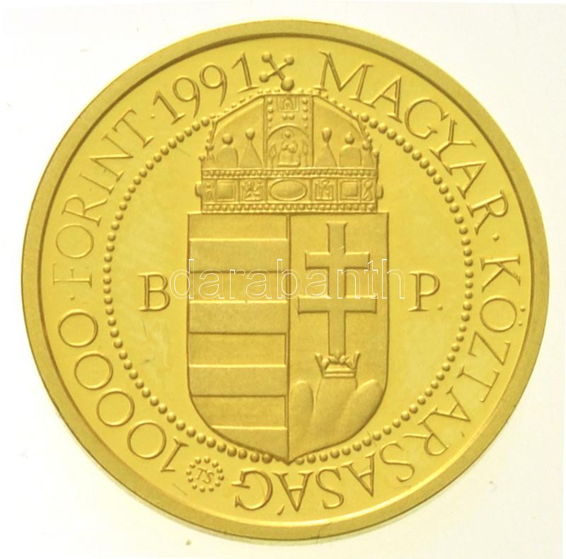 1991. 10.000Ft Au "II. János Pál pápa látogatása" dísztokban tanúsítvánnyal (6,98g/0.986) T:PP ujjlenyomat Hungary 1991. 10.000 Forint Au "Visit of Pope John Paul II" in box with certificate (6,98g/0.986) C:PP fingerprint Adamo EM121