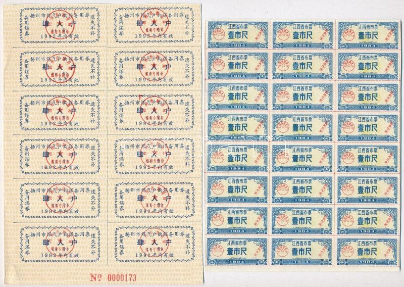 Beschreibung: Kína ~1983-1992. 5 klf rizsjegy ívben T:I-II