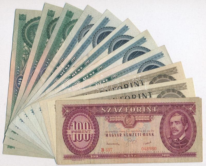 Beschreibung: 11db-os vegyes magyar forint bankjegy tétel, közte 1949. 100Ft T:III
