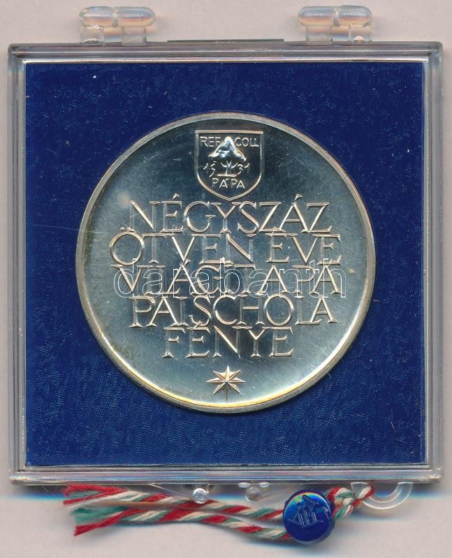 Rékassy Levente (1943-) / Vadász György (1924-1997) 1981. "450. éves a Pápai Református Kollégium" jelzett Ag emlékérem plombált tokban (0.640/42mm) T:BU