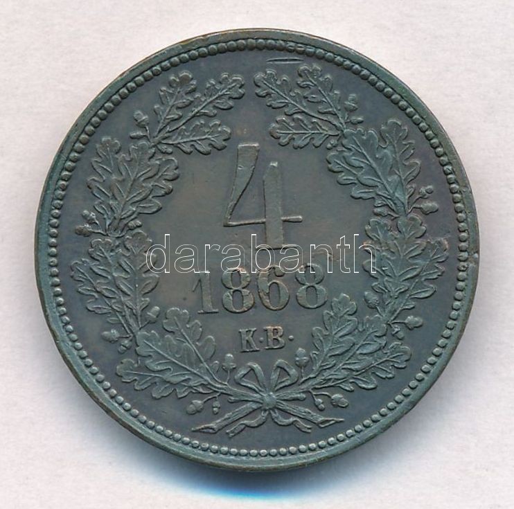1868KB 4kr Cu T:1- Adamo M7.1 https://www.darabanth.com/de/313-Fernauktion/313.0/Numismatik/Ungarische-Munzen-und-Munzen-mit-ungarischem-Munzzeichen~300008/1868KB-4kr-Cu-T1--Adamo-M71~II1717062