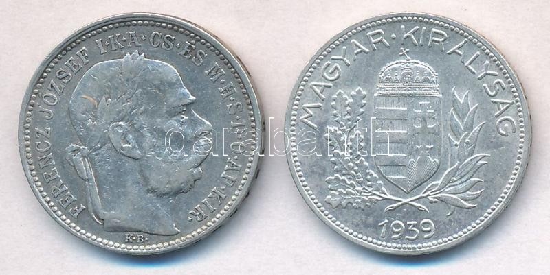 1895KB 1K Ag "Ferenc József" + 1939. 1P Ag T:2,2-,1- https://www.darabanth.com/de/313-Fernauktion/313.0/Numismatik/Ungarische-Munzen-und-Munzen-mit-ungarischem-Munzzeichen~300008/1895KB-1K-Ag-Ferenc-Jozsef-plus-1939-1P-Ag-T2-2-1-~II1704872