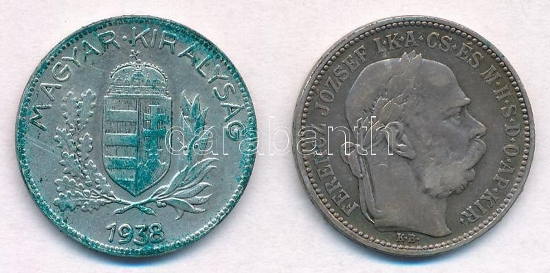 Beschreibung: 1896KB 1K Ag "Ferenc József" + 1938. 1P Ag T:2-,2