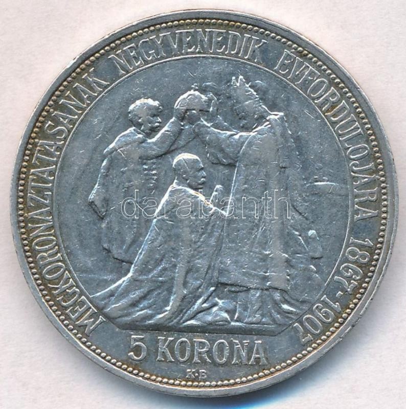 1907KB 5K Ag "Ferenc József koronázásának 40. évfordulója" T... https://www.darabanth.com/de/313-Fernauktion/313.0/Numismatik/Ungarische-Munzen-und-Munzen-mit-ungarischem-Munzzeichen~300008/1907KB-5K-Ag-Ferenc-Jozsef-koronazasanak-40-evforduloja-T2---Adamo-K71~II1690748