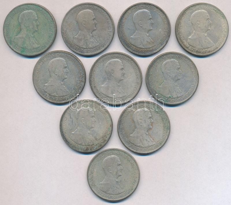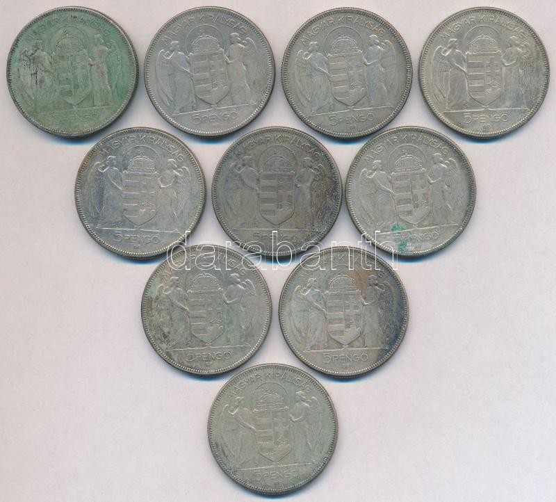 1930. 5P Ag "Horthy jobbra" (10x) T:2-,3 patina, karc