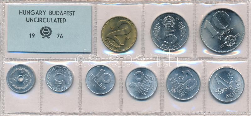 Beschreibung: 1976. 2f-10Ft (9xklf) érmés forgalmi sor fóliatokban T:1 kis patina