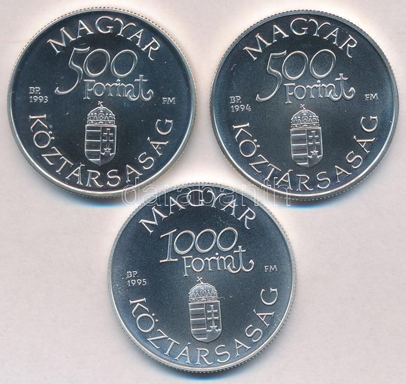 1993. 500Ft Ag "Régi dunai hajók - Árpád" + 1994. 500Ft Ag "Régi dunai hajók - Carolina" + 1995. 1000Ft Ag "Régi dunai hajók III - Hableány" T:BU