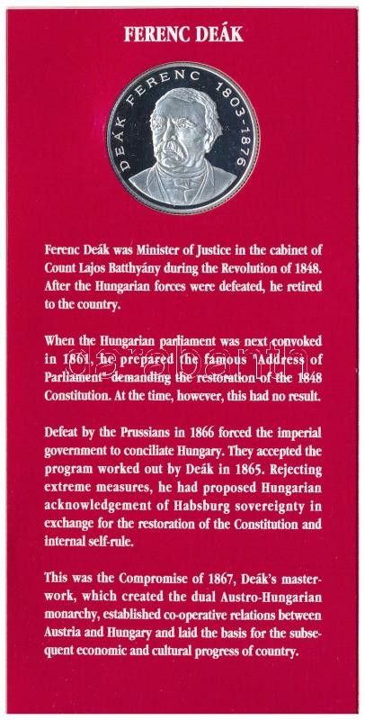 Beschreibung: 1994. 10f-200Ft (11xklf) forgalmi sor dísztokban, közte 1994. 200Ft Ag "Deák" T:PP