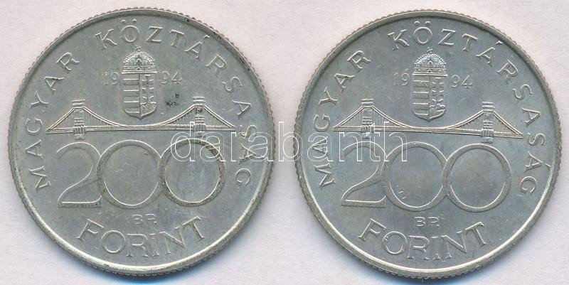 Beschreibung: 1994. 200Ft Ag "Deák" (2x) T:2 kis patina