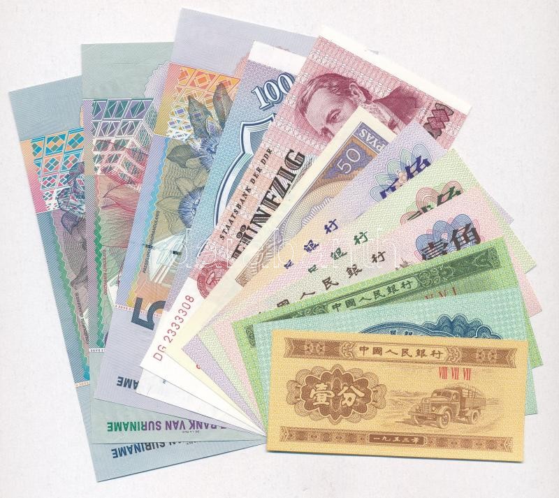 12db-os vegyes bankjegy tétel, benne NDK, Kínai Népköztársaság, Oroszország, Mianmar és Suriname T:I-II 12pcs of various banknotes, including GDR, China / Peoples Republic, Russia, Myanmar and Suriname C:UNC-XF