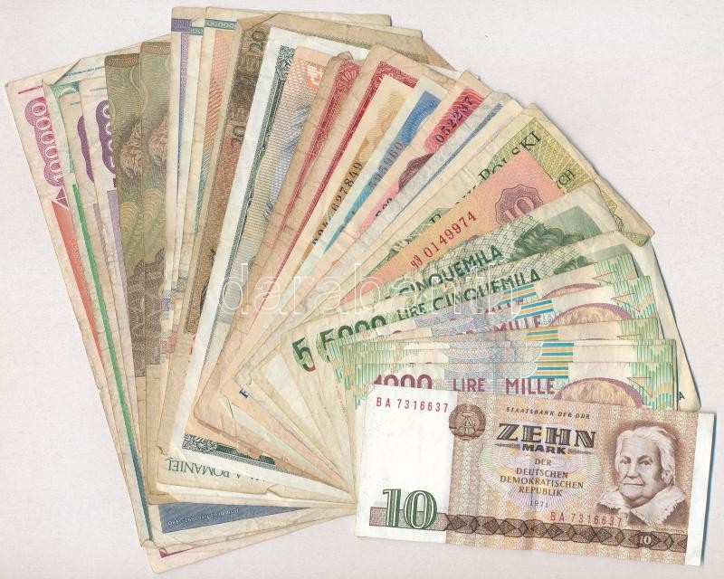 30db-os vegyes külföldi bankjegy tétel, közte Csehszlovákia, Jugoszlávia, Lengyelország, Olaszország, Románia T:III,III- 30pcs of various banknotes, including Czechoslovakia, Yugoslavia, Poland, Italy, Romania C:F,VG