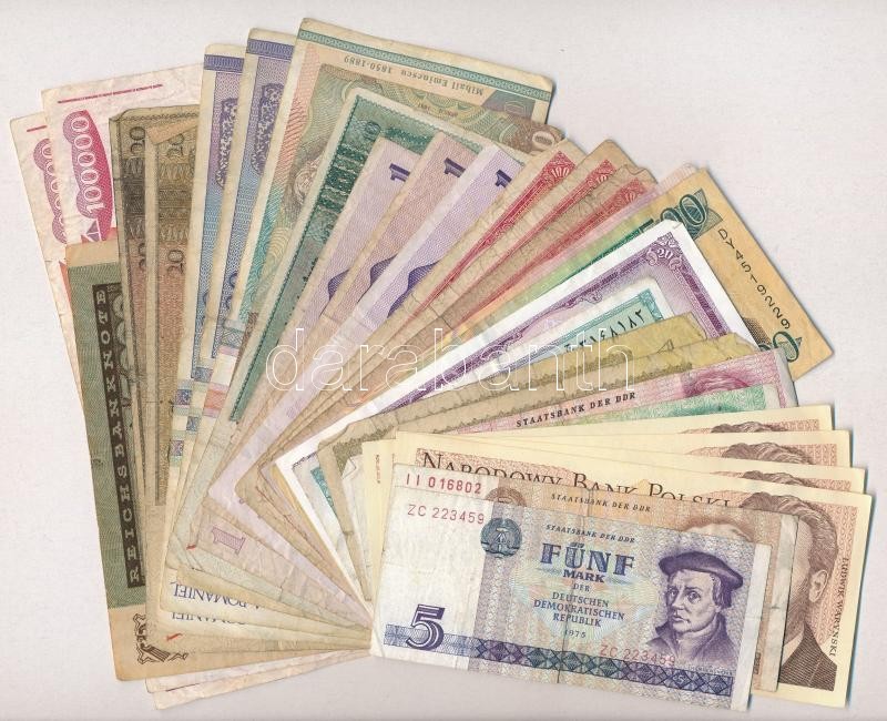 30db-os vegyes külföldi bankjegy tétel, közte Lengyelország (3db sorszámkövető 100Zl), Izrael, Jugoszlávia, NDK, Románia, Weimari Köztársaság T:III,III- 30pcs of various banknotes, including Poland (with 3 sequential serial 100 Zlotych), Israel, Yugoslavia, GDR, Romania, Weimar Republic C:F,VG