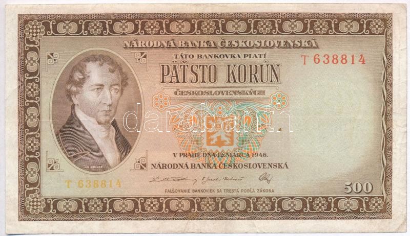 Czechoslovakia 1946. 500 Korun C:... https://www.darabanth.com/de/313-Fernauktion/313.0/Numismatik/Weltweit-Banknoten~300012/Csehszlovakia-1946-500K-TIII-III---Czechoslovakia-1946-500-Korun-CF-VG--Krause-73~II1714270