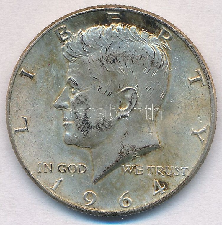 Amerikai Egyesült Államok 1964D 1/2$ Ag "Kennedy" T:2 patina... https://www.darabanth.com/de/313-Fernauktion/313.0/Numismatik/Weltweit-Munzen~300013/Amerikai-Egyesult-Allamok-1964D-12USD-Ag-Kennedy-T2-patina--USA-1964D-12-Dollar-Ag-Kennedy-C~II1707254