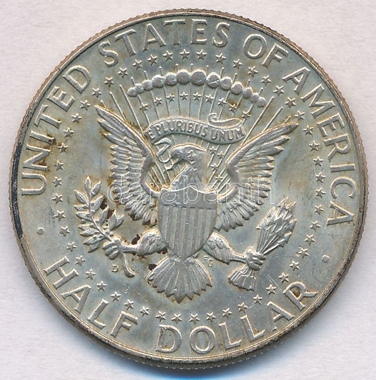 Beschreibung: Amerikai Egyesült Államok 1964D 1/2$ Ag "Kennedy" T:2 patina