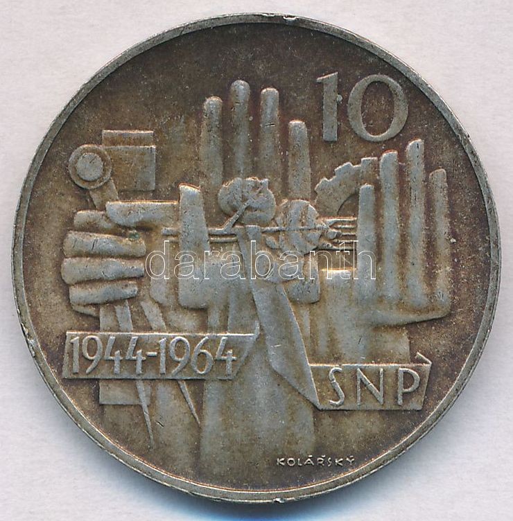 Csehszlovákia 1964. 10K Ag "Szlovák felkelés 20. évfordulója" T:2 patina, ph. Czechoslovakia 1964. 10 Korun Ag "20th Anniversary - Slovak uprising" C:XF patina, edge error Krause KM#56