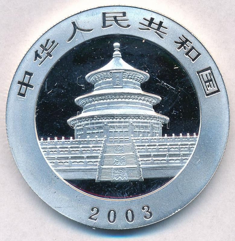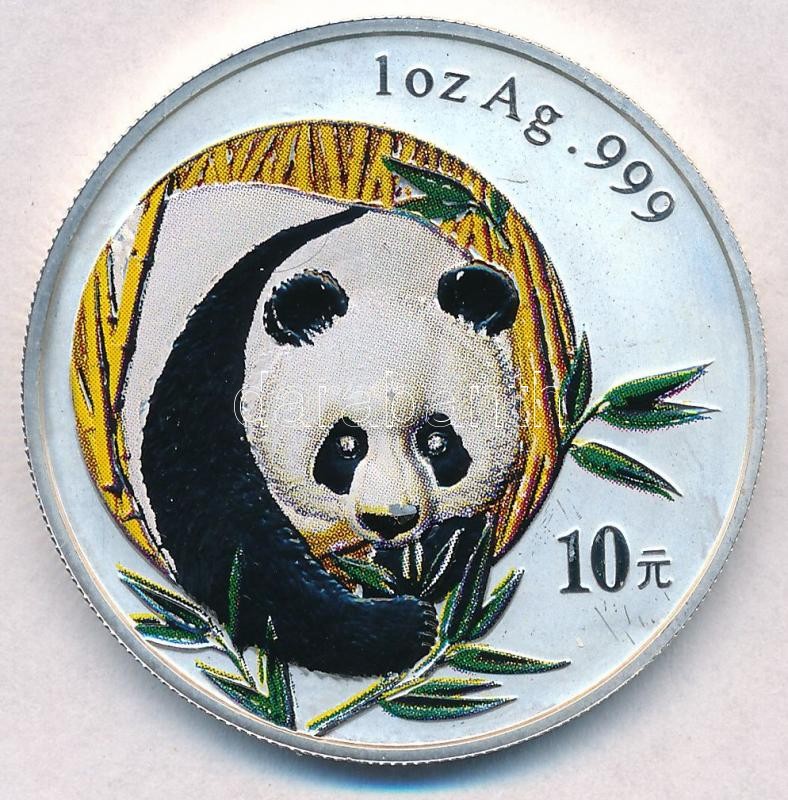 Kína 2003. 10Y Ag "Panda" hátoldal multicolor festett (1oz/0.999) T:PP kis festékhiány