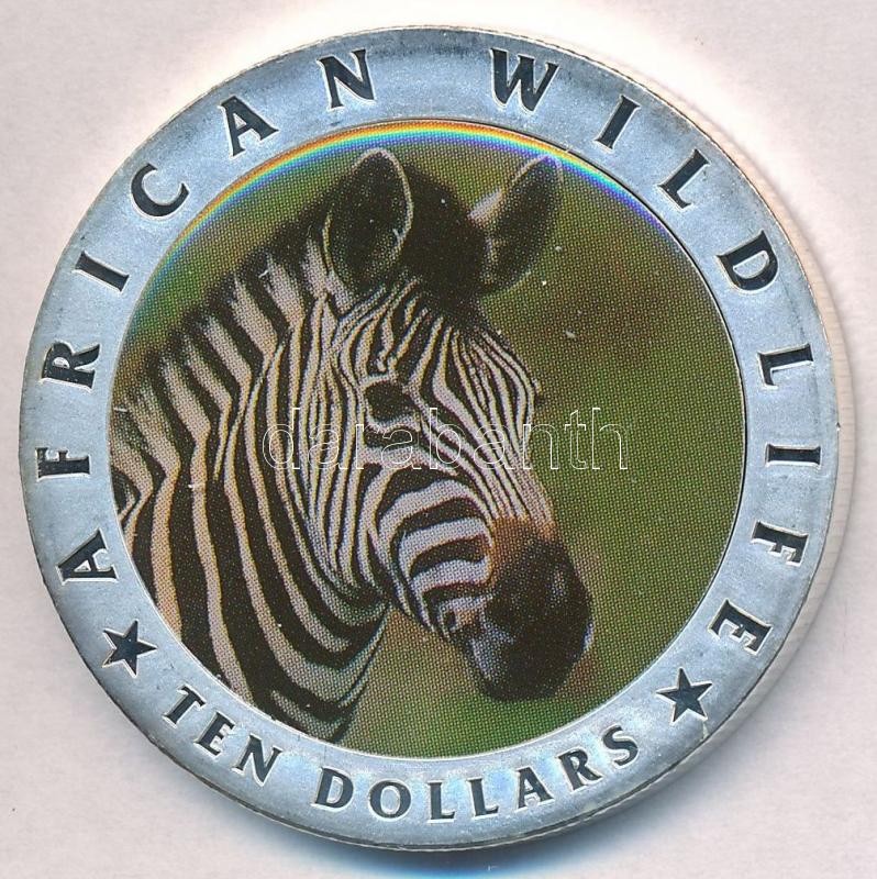 Libéria 2002. 10$ Cu-Ni "Afrikai vadak - Zebra" multicolor T:PP kis patina Liberia 2002. 10 Dollars Cu-Ni "African Wildlife - Zebra " multicolor C:PP small patina