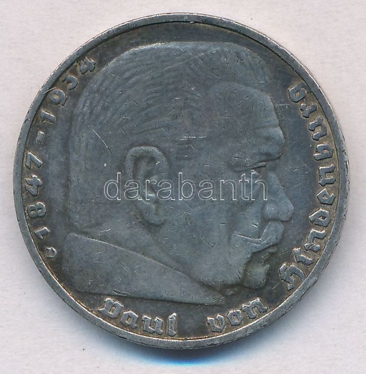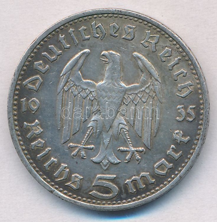 Német Harmadik Birodalom 1935D 5M Ag "Hindenburg" T:2 German Third Reich 1935D 5 Mark Ag "Hindenburg" C:XF Krause KM#86