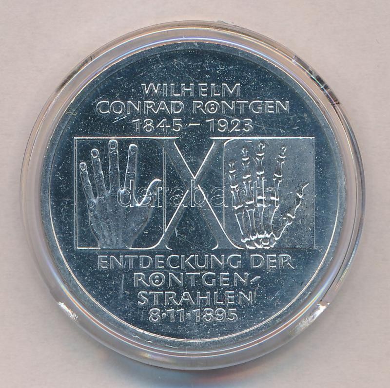 Németország 1995D 10M Ag "150 éve született Wilhelm Conrad Röntgen - 100 éves az X-sugár" T:1-