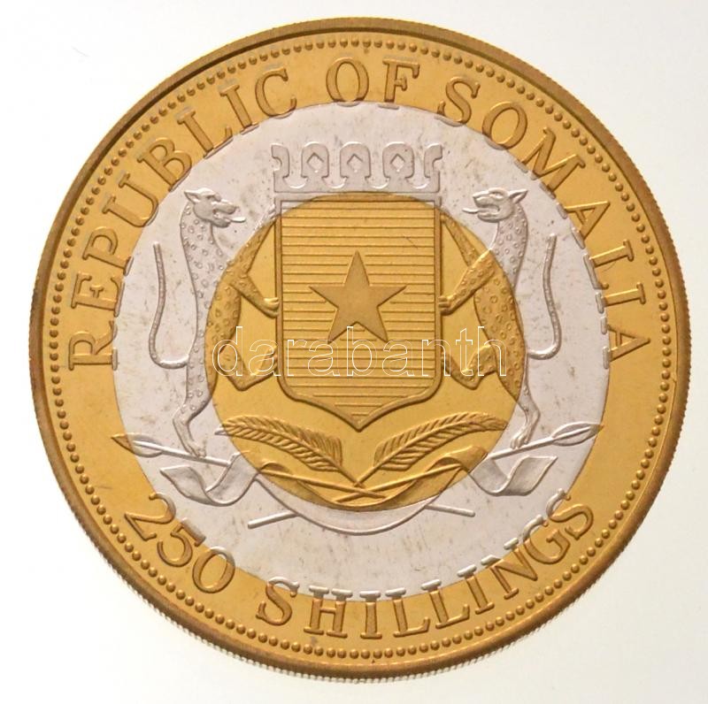 Szomália 1998. 250Sh sárgaréz-Cu-Ni bimetál "Sáfrányos szövőmadár" multicolor T:1- Somalia 1998. 250 Shillings Bi-Metallic Brass center in Cu-Ni ring "Golden Palm Weaver" multicolor C:AU Krause KM#67a