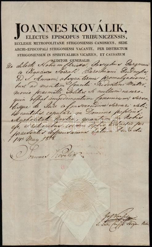 1818 Kovalik János (1764-1844) tribunici választott püspök levele egyh... https://www.darabanth.com/de/314-Fernauktion/314.0/Andere-Sammelgebiete/Dokument~100016/1818-Kovalik-Janos-1764-1844-tribunici-valasztott-puspok-levele-egyhazi-ugyben~II1720699