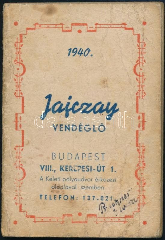 1940 Budapest, Jajczay vendéglő reklám naptára, 11x7,5 cm https://www.darabanth.com/de/314-Fernauktion/314.0/Andere-Sammelgebiete/Drucksachen~100029/1940-Budapest-Jajczay-vendeglo-reklam-naptara-11x7-5-cm~II1722780