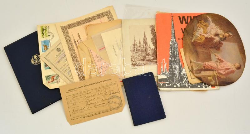 cca 1940-1980 Vegyes papírrégiség tétel, közte igazolványok, Bécs térk... https://www.darabanth.com/de/314-Fernauktion/314.0/Andere-Sammelgebiete/Drucksachen~100029/cca-1940-1980-Vegyes-papirregiseg-tetel-kozte-igazolvanyok-Becs-terkep-levelek-okmanyo~II1719803