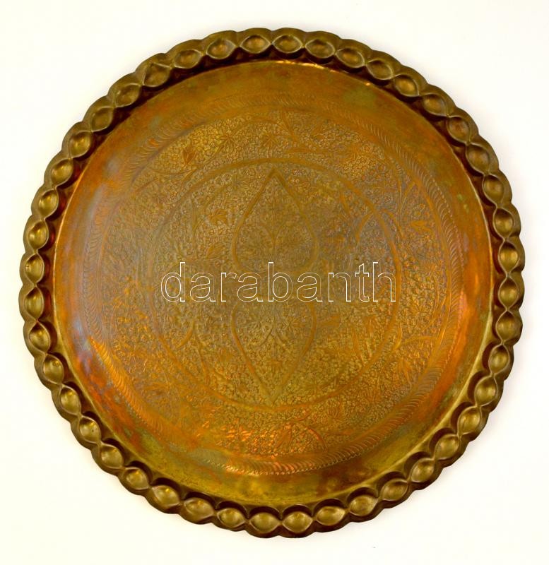 Beschreibung: Keleti mintás réz falitál, kalapált, d: 58 cm