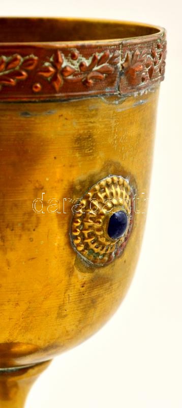 Beschreibung: Kövekkel díszített réz kehely, jelzés nélkül, m: 18 cm