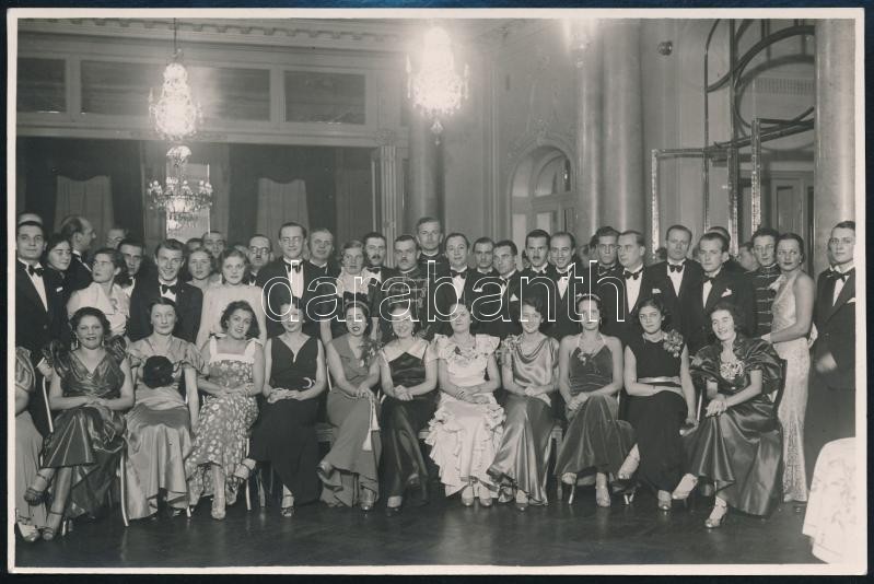 Beschreibung: 1935 A Magyar Atlétikai Club (MAC) estélye, feliratozott, pecséttel jelzett fotó Schäffer szalonjából, 11,5x17,5 cm