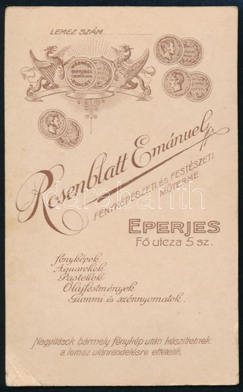 cca 1900 Perjes, Hölgy műtermi portréja Rosenblatt Emánuel műterméből... https://www.darabanth.com/de/314-Fernauktion/314.0/Andere-Sammelgebiete/Foto~100019/cca-1900-Perjes-Holgy-mutermi-portreja-Rosenblatt-Emanuel-mutermebol-kemenyhatu-foto-~II1724216