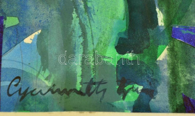 Beschreibung: Gyarmathy jelzéssel: Kapuk. Kollázs, papír, üvegezett keretben, 24×18 cm