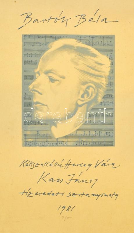 Kass János (1927-2010): Bartók Béla - Kékszakállú herceg vára. Szitanyomat, papír, jelzés nélkül, számozott (50/100), foltos, kis szakadással, sérült, 60×40 cm